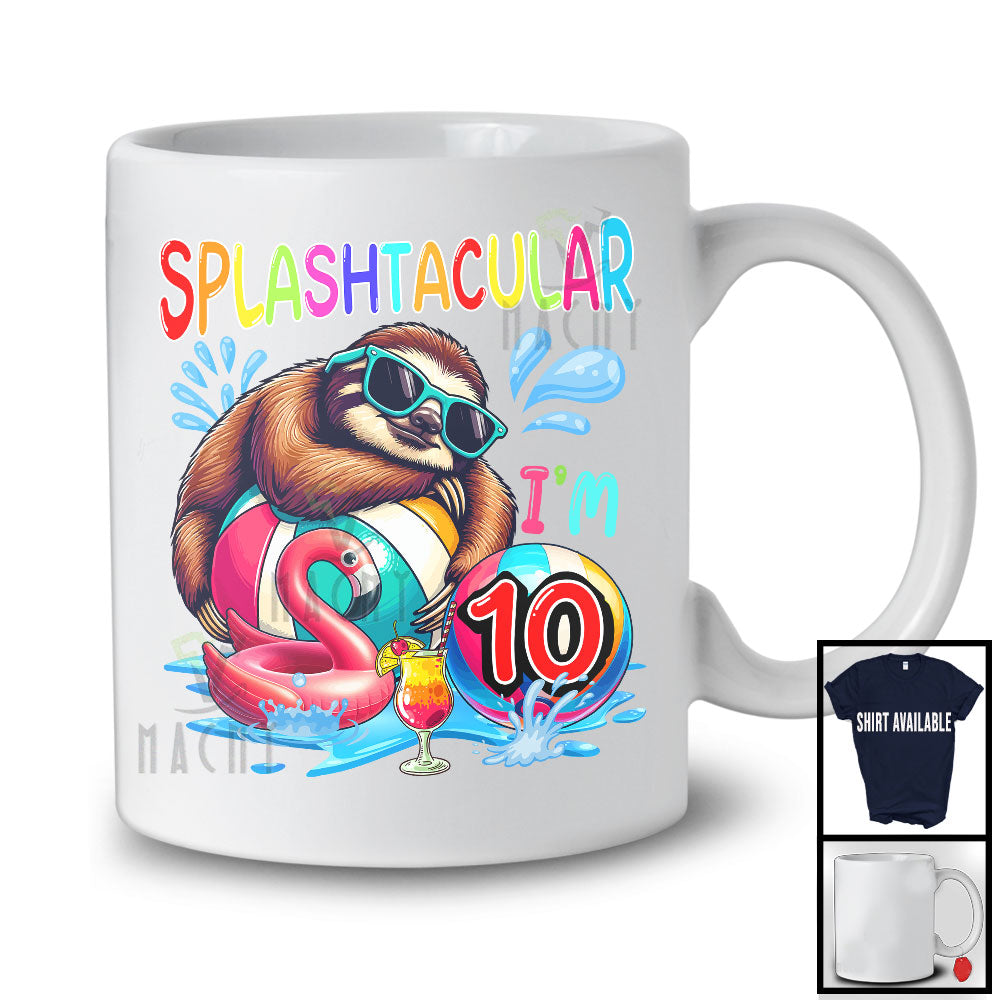 Splashtacular I'm 10, Happy 10th Birthday Pool Party Cute Sloth Lover, Matching Family Group T-Shirt