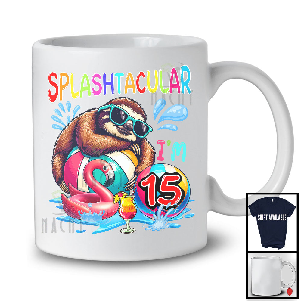 Splashtacular I'm 15, Happy 15th Birthday Pool Party Cute Sloth Lover, Matching Family Group T-Shirt