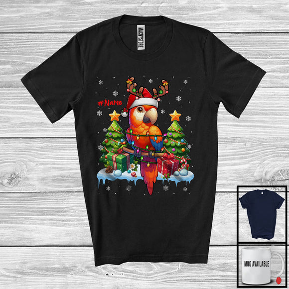 Personalized Custom Name Santa Reindeer Macaw; Joyful Christmas Tree Lights Macaw Bird T-Shirt
