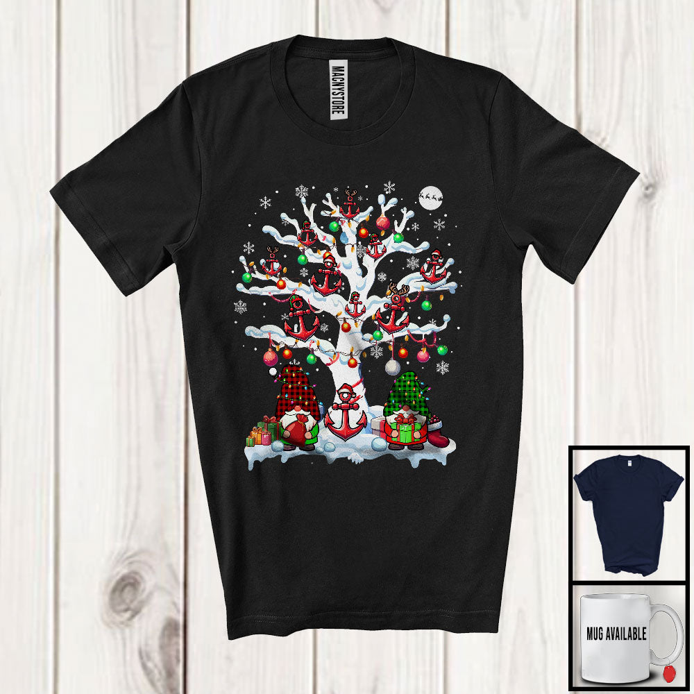 Anchor X-mas Lights On Christmas Tree; Joyful Plaid Gnomes Anchor Boating; Family Group T-Shirt. This cotton t-shirt is a durable staple product with a classic fit. One of the most popular items, it has a relaxed style made for everyday and casual wear.