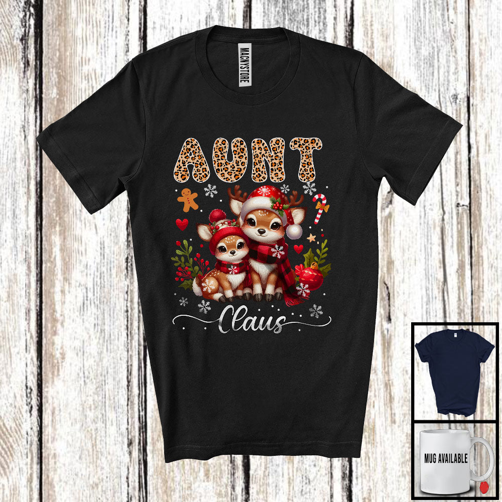 Aunt Claus; Lovely Christmas Leopard Plaid Reindeer Lover; X-mas Snowing Family Group T-Shirt