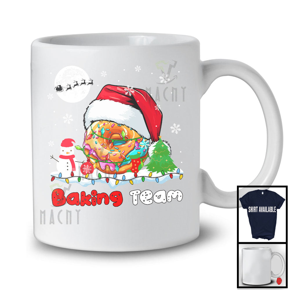 This Baking Team; Adorable Christmas Donut Santa; X-mas Lights Snowing Baker Group T-Shirt is great idea gift for your family, friends in this birthday, christmas, mother's day, father's day, patrick's day or any holiday.