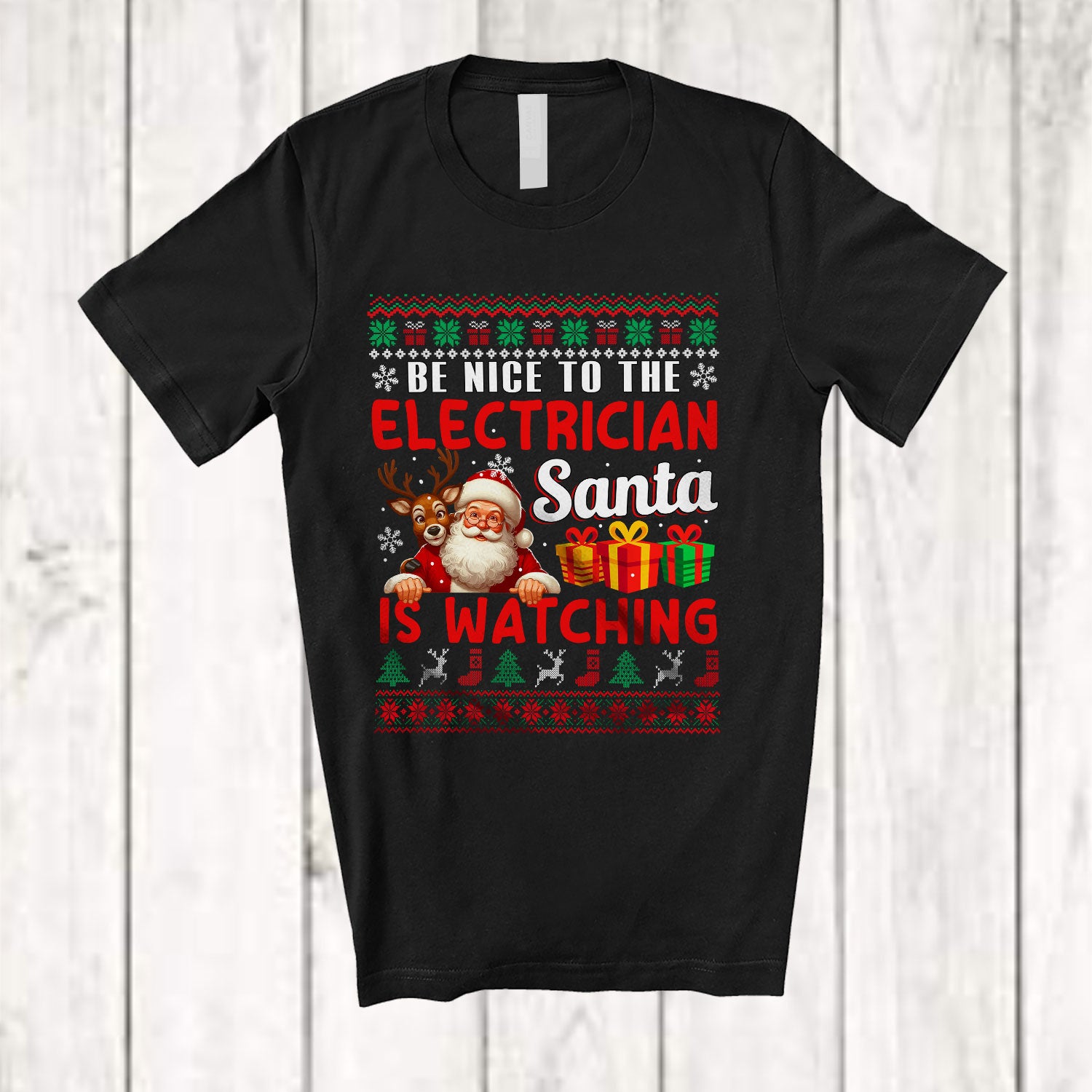 Be Nice To The Electrician Santa Is Watching; Amusing Christmas Sweater Santa; Jobs Careers T-Shirt