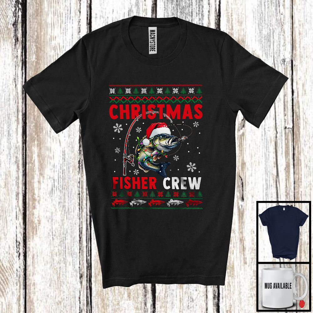 Christmas Fisher Crew; Amazing X-mas Sweater Santa Fish Snowing; Fishing Fisher Group T-Shirt. This cotton t-shirt is a durable staple product with a classic fit. One of the most popular items, it has a relaxed style made for everyday and casual wear.