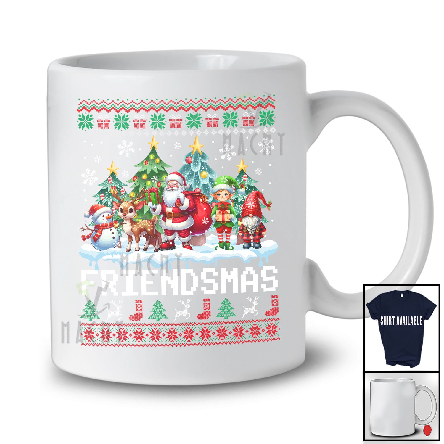 Friendsmas; Amusing Christmas Santa Reindeer Elf Snowman Gnome Squad; Sweater Family T-Shirt. This cotton t-shirt is a durable staple product with a classic fit. One of the most popular items, it has a relaxed style made for everyday and casual wear.