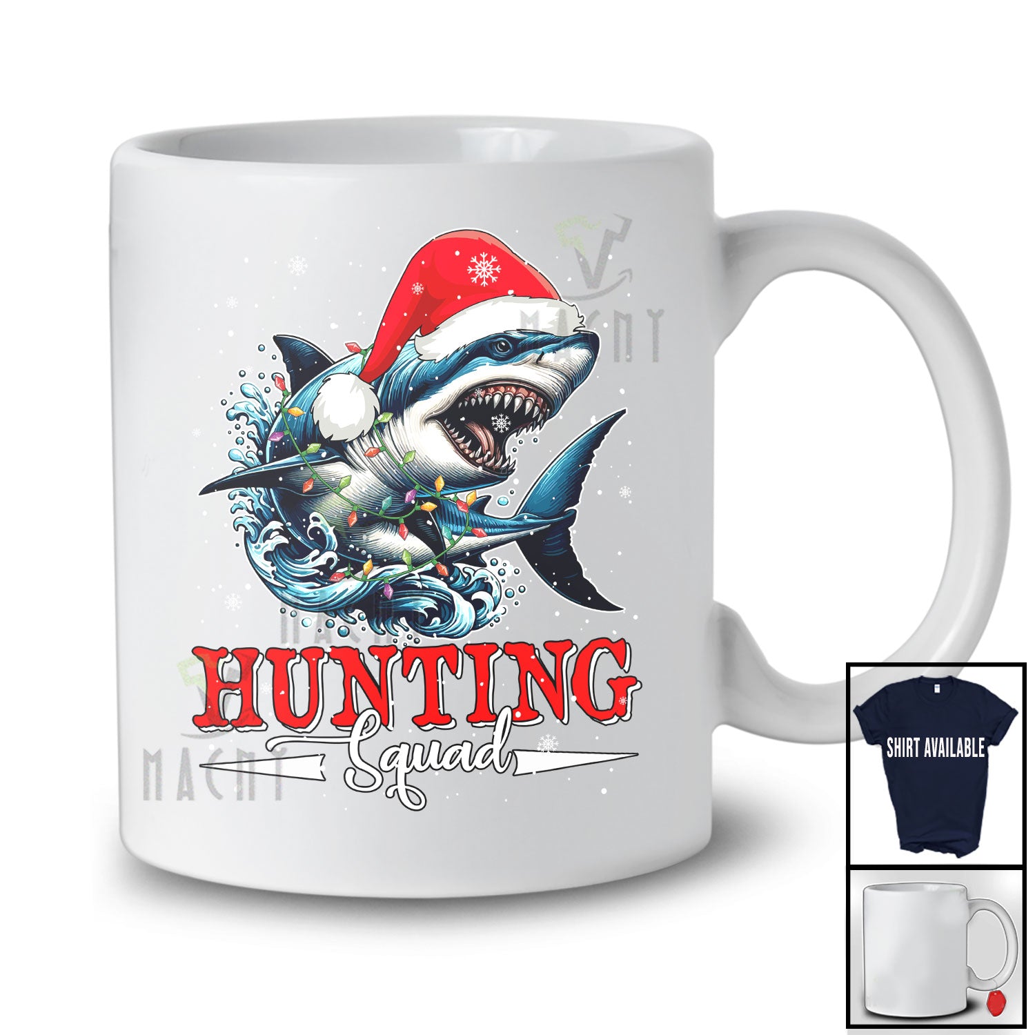 Hunting Squad; Scary Christmas Lights Santa Shark Sea Animal Lover; Snowing Around Family T-Shirt. This cotton t-shirt is a durable staple product with a classic fit. One of the most popular items, it has a relaxed style made for everyday and casual wear.