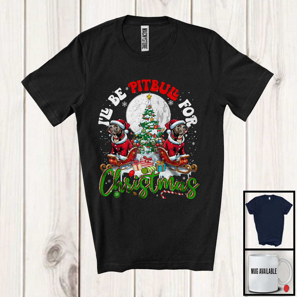 I'll Be Pit Bull For Christmas, Joyful Christmas Santa Pit Bull Lover, X-mas Tree Lights Snow T-Shirt