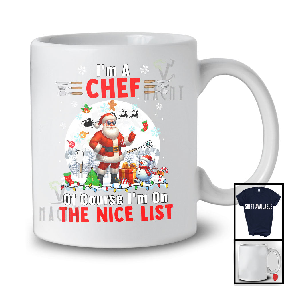 I'm A Chef I'm On The Nice List; Amazing Christmas Moon Santa Chef Group; X-mas Jobs T-Shirt