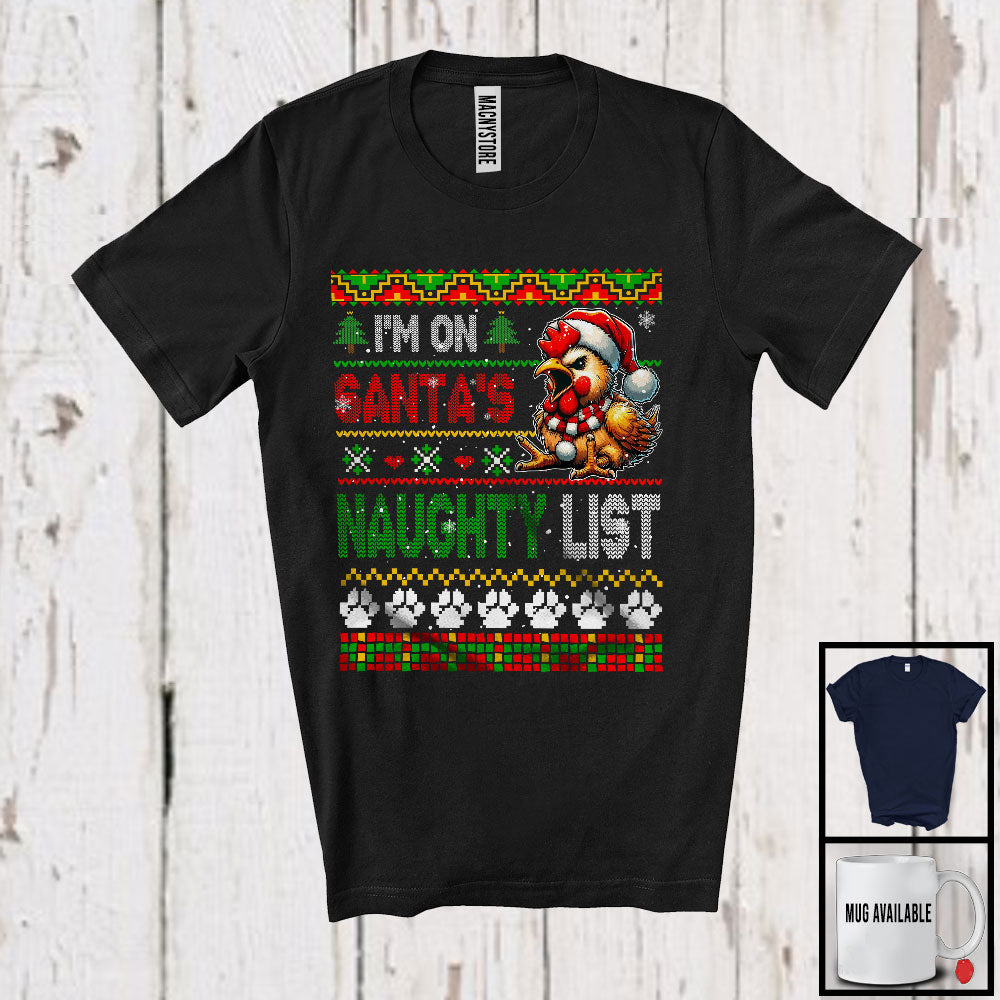 I'm On Santa's Naughty List, Lovely Christmas Sweater Santa Chicken, Matching Family Group T-Shirt