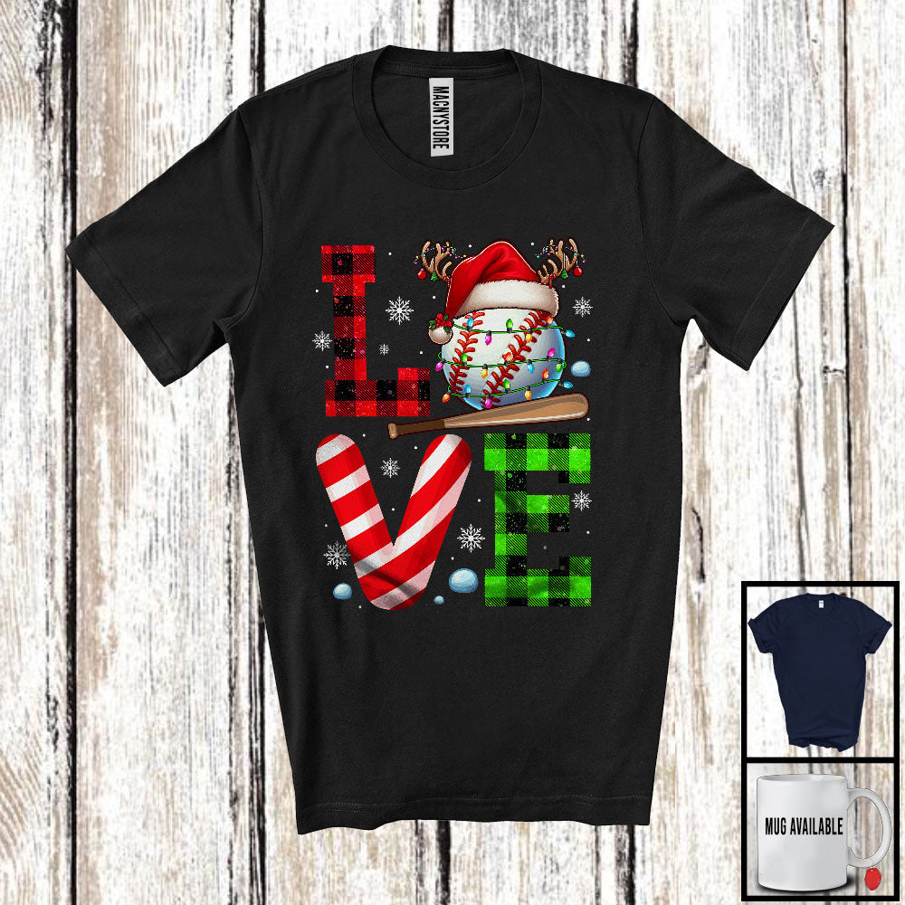new MacnyStore - LOVE Baseball; Cheerful Christmas Lights Plaid Baseball; Matching X-mas Sport Player Team T-Shirt – Macnystore