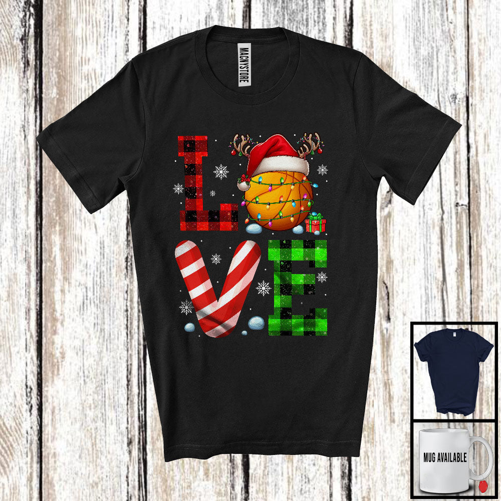 new MacnyStore - LOVE Basketball; Cheerful Christmas Lights Plaid Basketball; Matching X-mas Sport Player Team T-Shirt – Macnystore