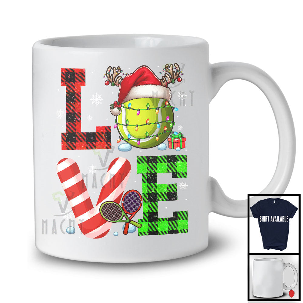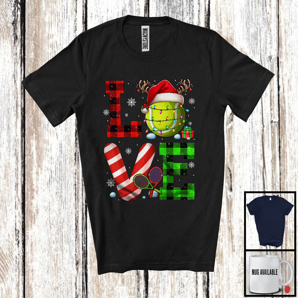 LOVE Tennis; Cheerful Christmas Lights Plaid Tennis; Matching X-mas Sport Player Team T-Shirt. This cotton t-shirt is a durable staple product with a classic fit. One of the most popular items, it has a relaxed style made for everyday and casual wear.