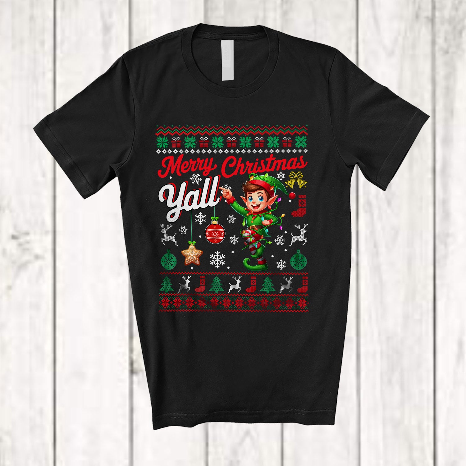 Merry Christmas Yall; Cheerful X-mas Lights Elf Snowing Around; Sweater Family Group T-Shirt