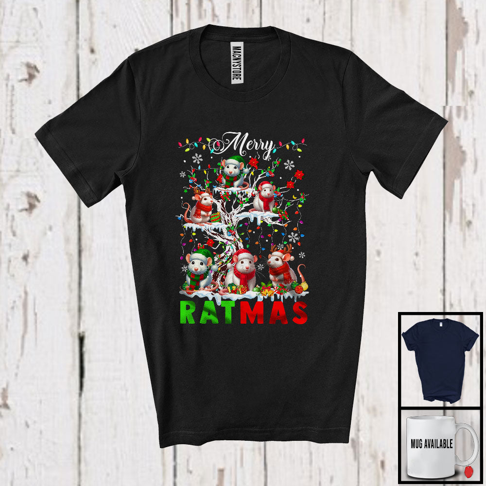 Merry Ratmas; Humorous Christmas Reindeer Elf Santa Rat On Christmas Tree; X-mas Animal Lover T-Shirt