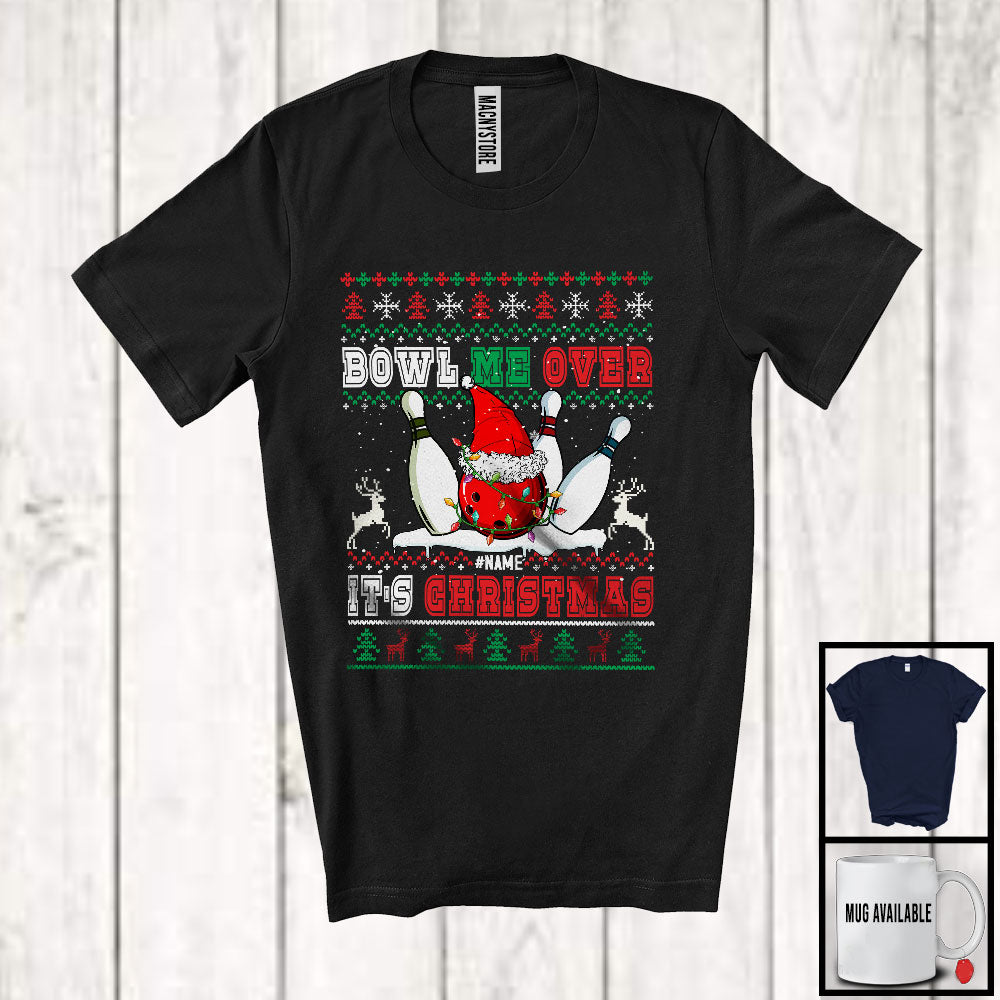 Personalized Bowl Me Over Christmas; Merry X-mas Sweater Bowling; Custom Name Sport Player T-Shirt