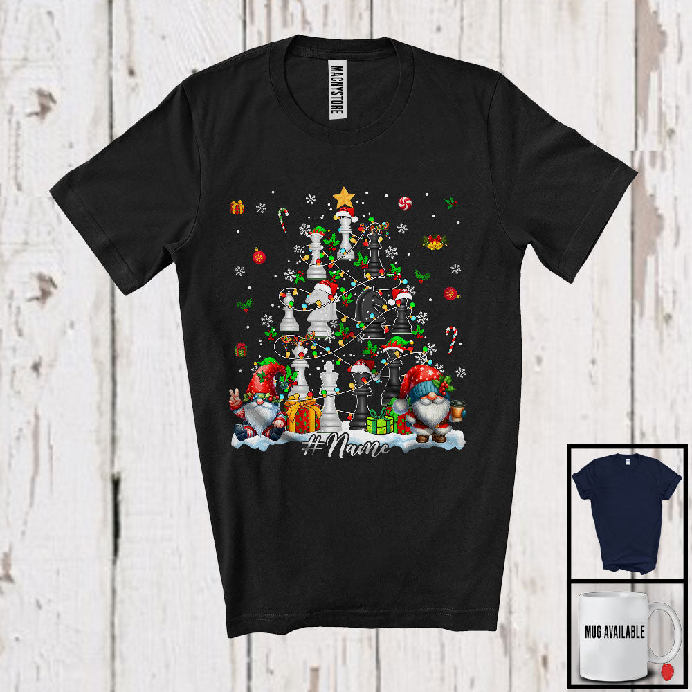 Personalized Chess Equipment As Christmas Tree; Lovely Gnomes; Custom Name Sport Player T-Shirt