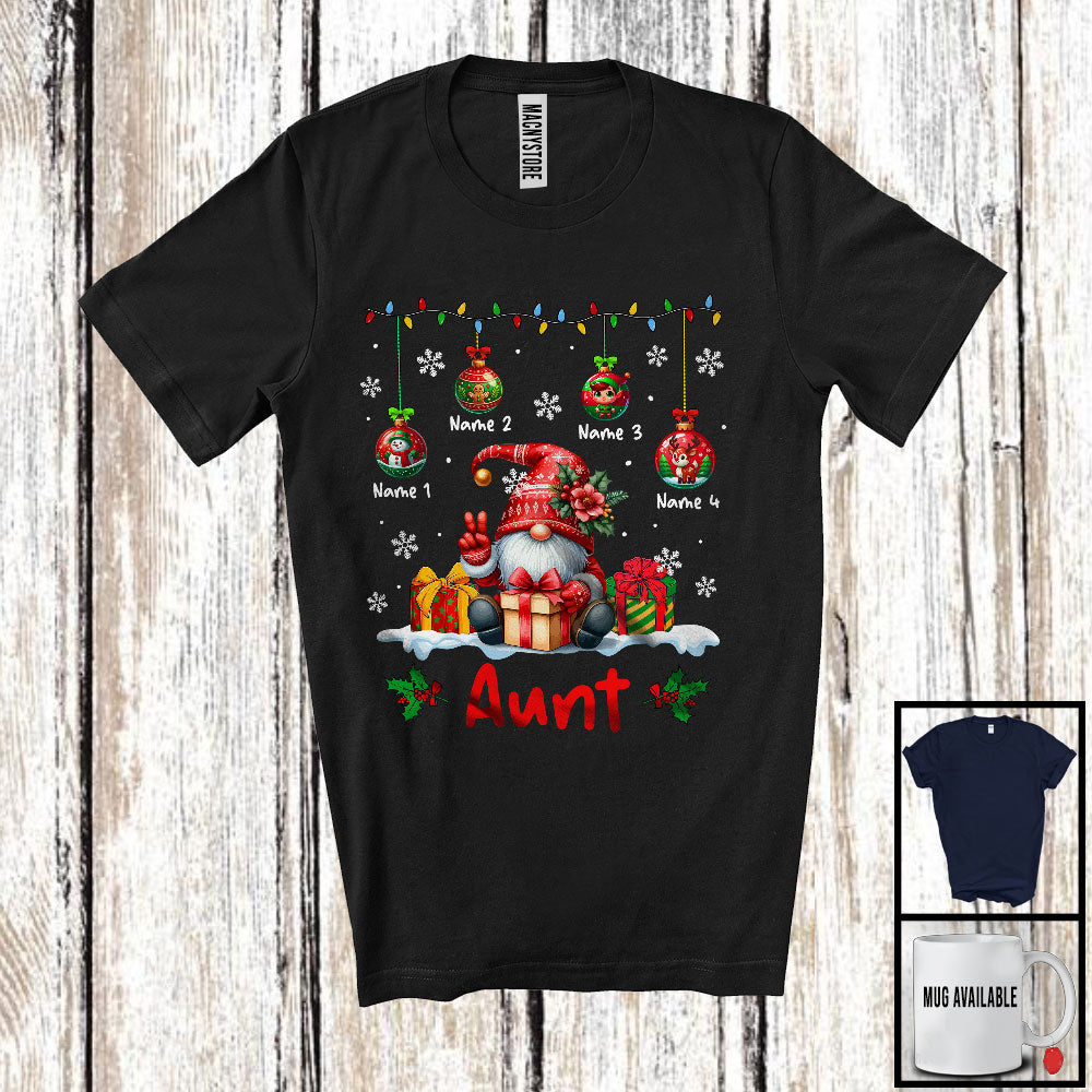 Personalized Custom Name Aunt; Adorable Christmas Lights Ornaments Gnomes; Family T-Shirt