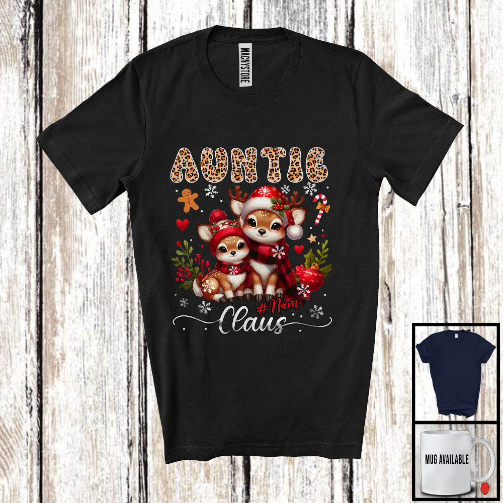 Personalized Custom Name Auntie Claus; Adorable Christmas Leopard Plaid Reindeer; Family T-Shirt