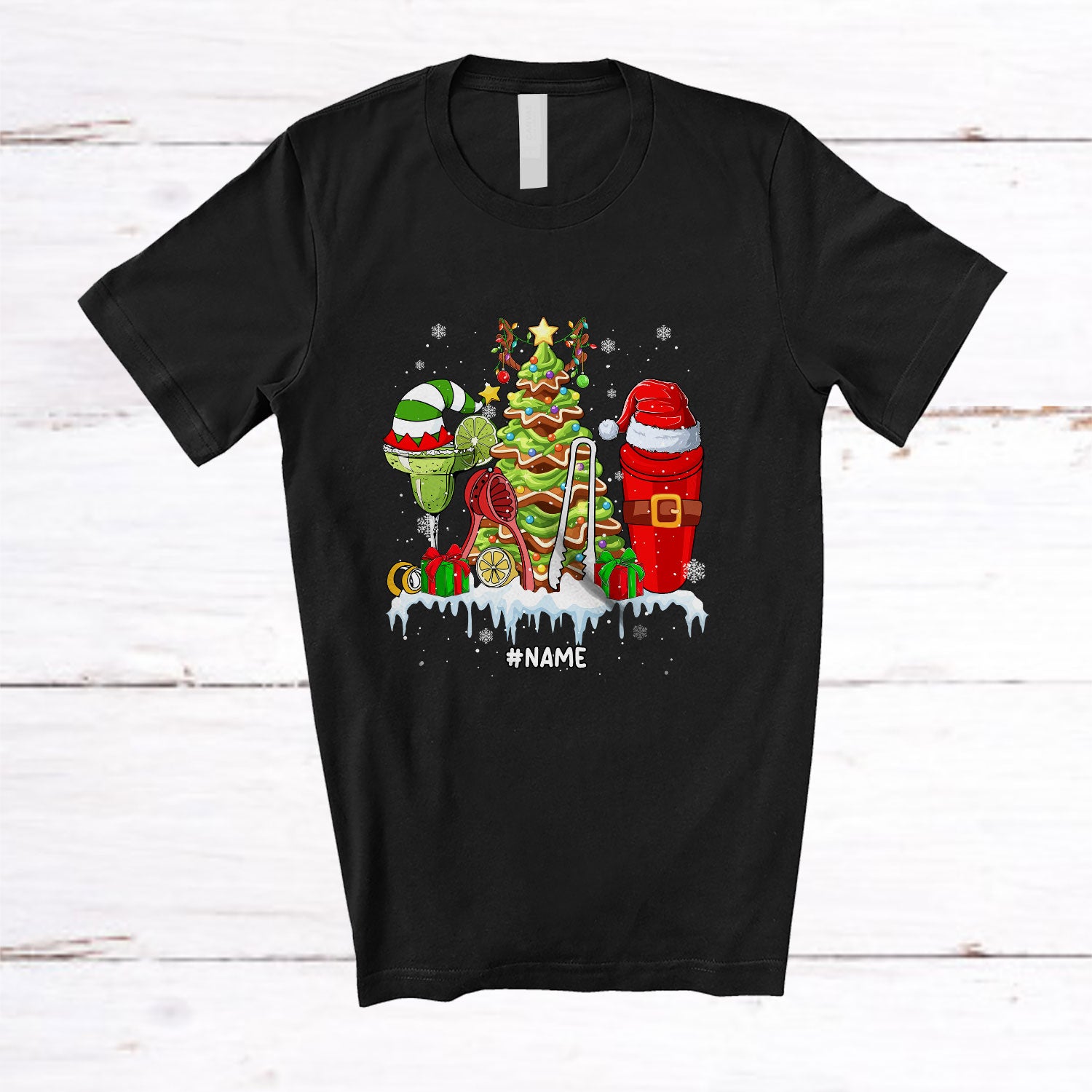 Personalized Custom Name Bartender Tools Christmas Tree Santa Elf; Proud X-mas Snowing; Jobs T-Shirt