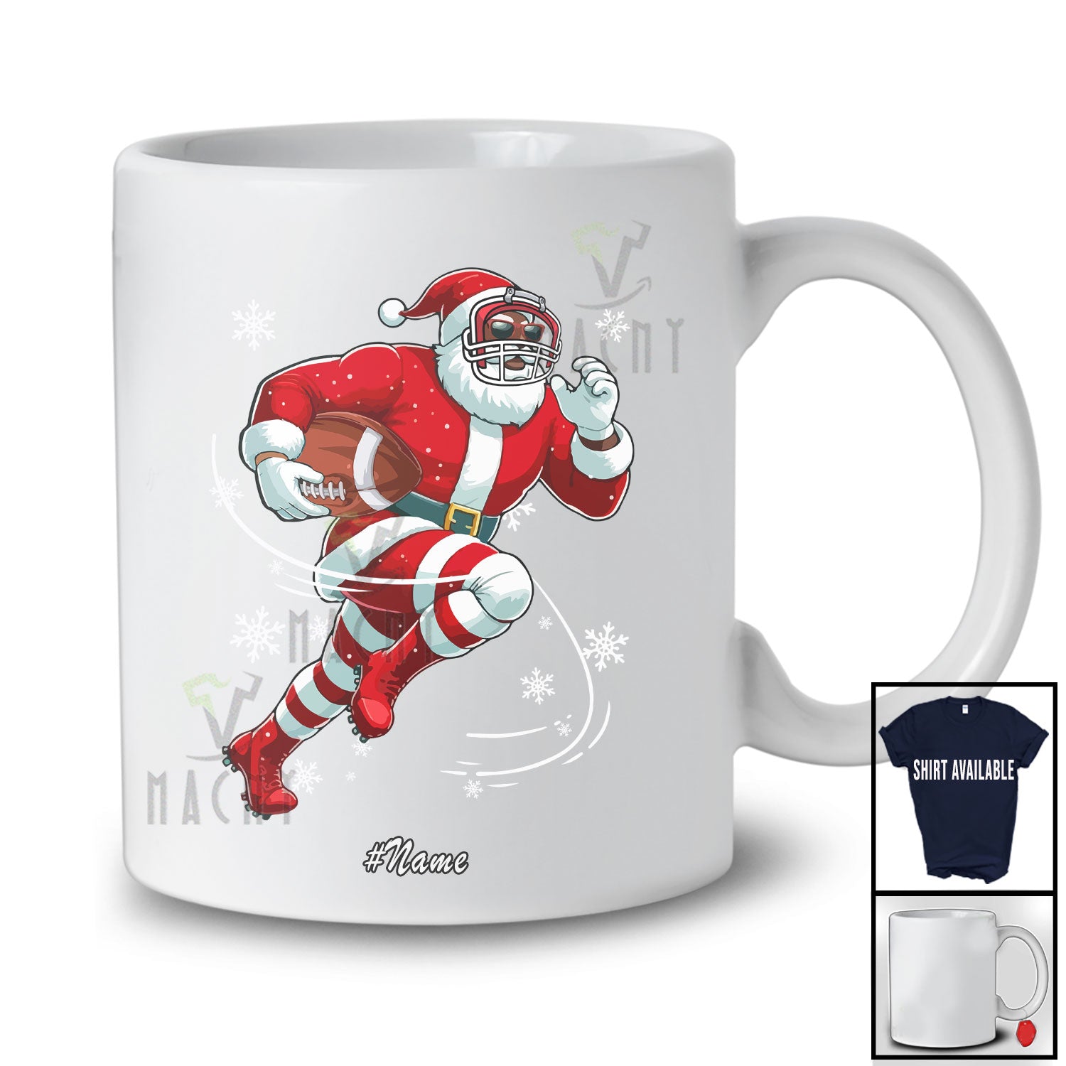 • Personalized Custom Name Black African Santa Playing Football; Joyful Christmas Afro Player T-Shirt. This cotton t-shirt is a durable staple product with a classic fit. One of the most popular items, it has a relaxed style made for everyday and casual wear.