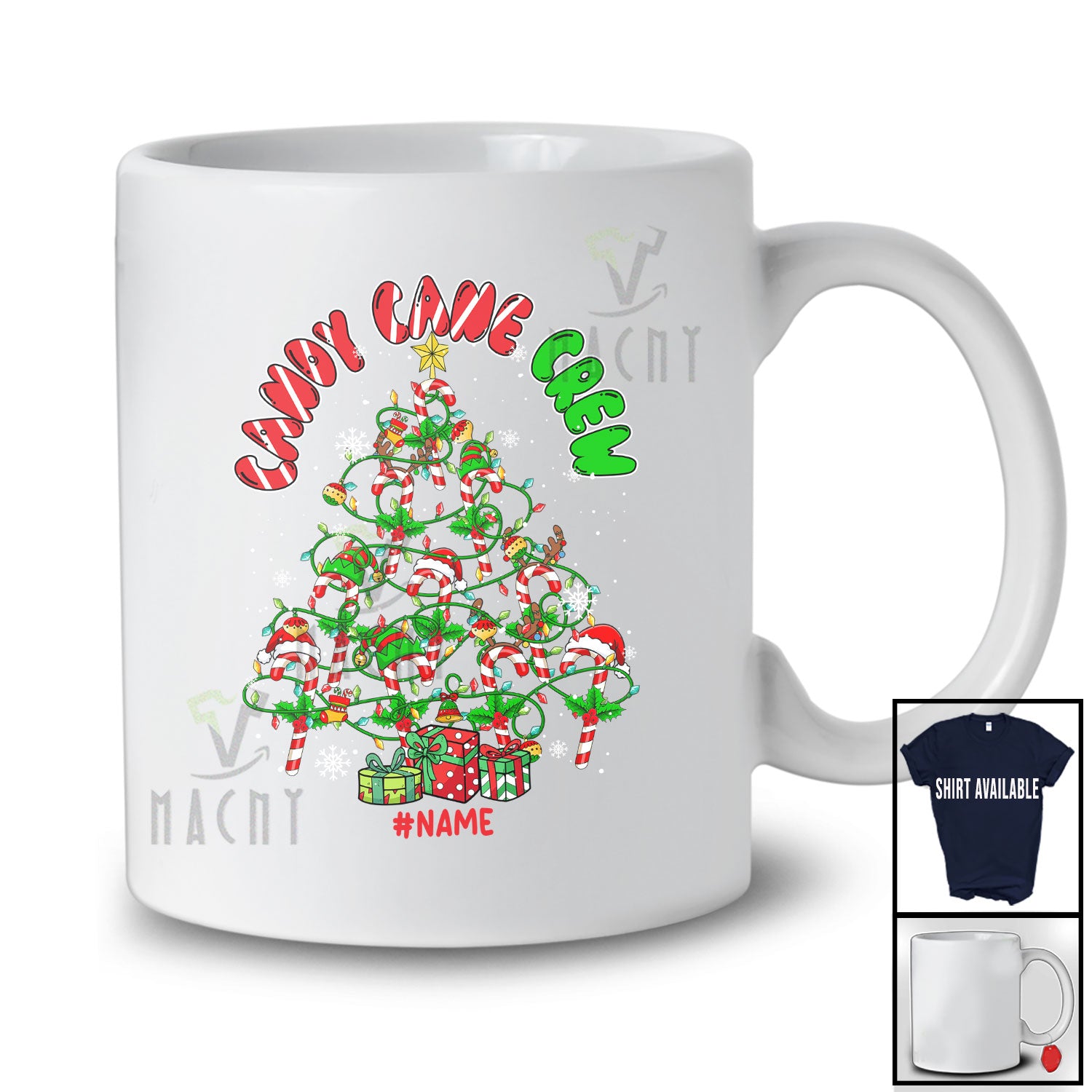 • Personalized Custom Name Candy Cane Crew; Merry Christmas Tree Candy Canes Santa Elf T-Shirt. This cotton t-shirt is a durable staple product with a classic fit. One of the most popular items, it has a relaxed style made for everyday and casual wear.