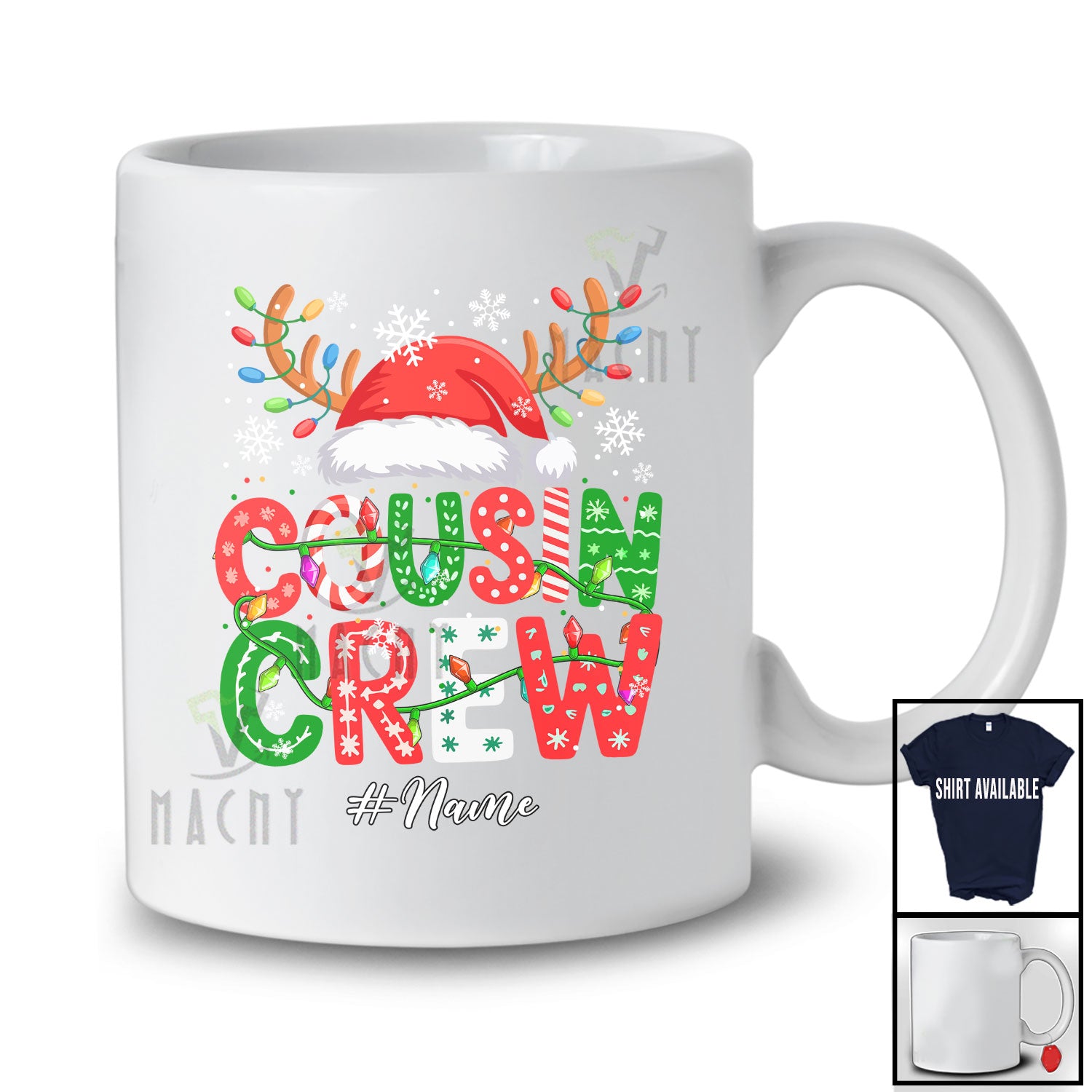 Personalized Custom Name Cousin Crew; Lovely Christmas Lights Santa Reindeer; Family Group T-Shirt. This cotton t-shirt is a durable staple product with a classic fit. One of the most popular items, it has a relaxed style made for everyday and casual wear.