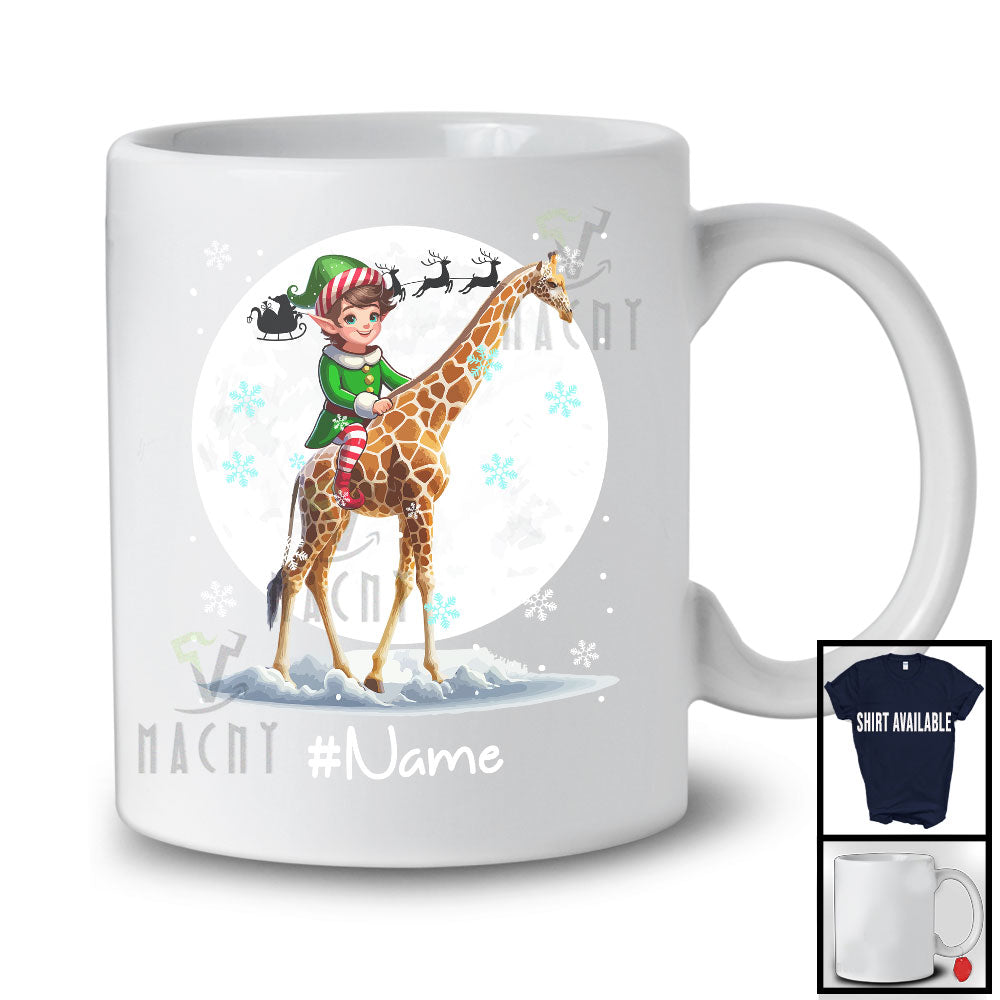 Personalized Custom Name Elf Riding Giraffe, Joyful Christmas Moon Snow Giraffe, X-mas Team T-Shirt