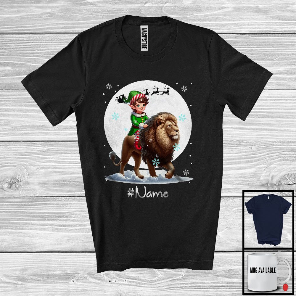 Personalized Custom Name Elf Riding Lion, Joyful Christmas Moon Snow Lion, X-mas Team T-Shirt