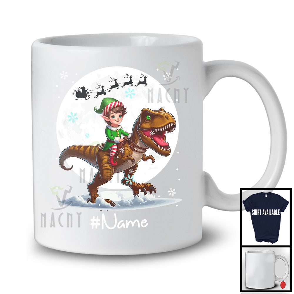 new MacnyStore - Personalized Custom Name Elf Riding T-Rex, Joyful Christmas Moon Snow T-Rex, X-mas Team T-Shirt – Macnystore