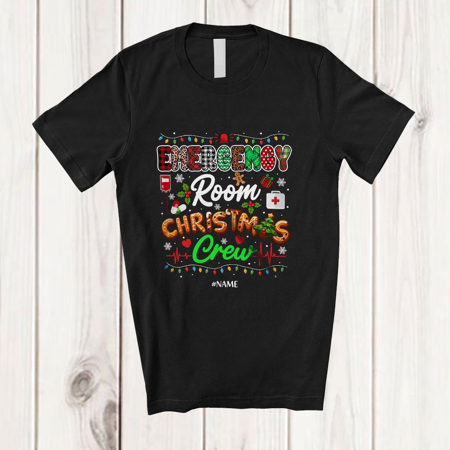 • Personalized Custom Name Emergency Room Christmas Crew; Joyful Santa Cookies Nursing Nurse T-Shirt. This cotton t-shirt is a durable staple product with a classic fit. One of the most popular items, it has a relaxed style made for everyday and casual wear.
