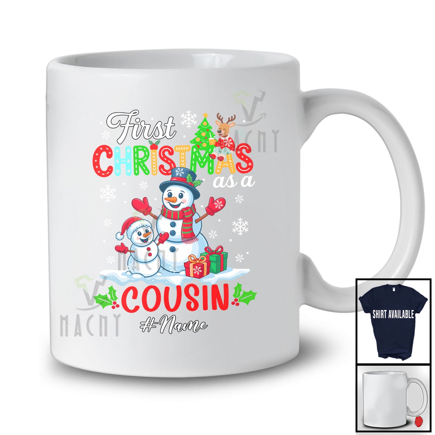 Personalized Custom Name First Christmas As A Cousin; Adorable Snowman Wearing Scarf; Family T-Shirt. This cotton t-shirt is a durable staple product with a classic fit. One of the most popular items, it has a relaxed style made for everyday and casual wear.