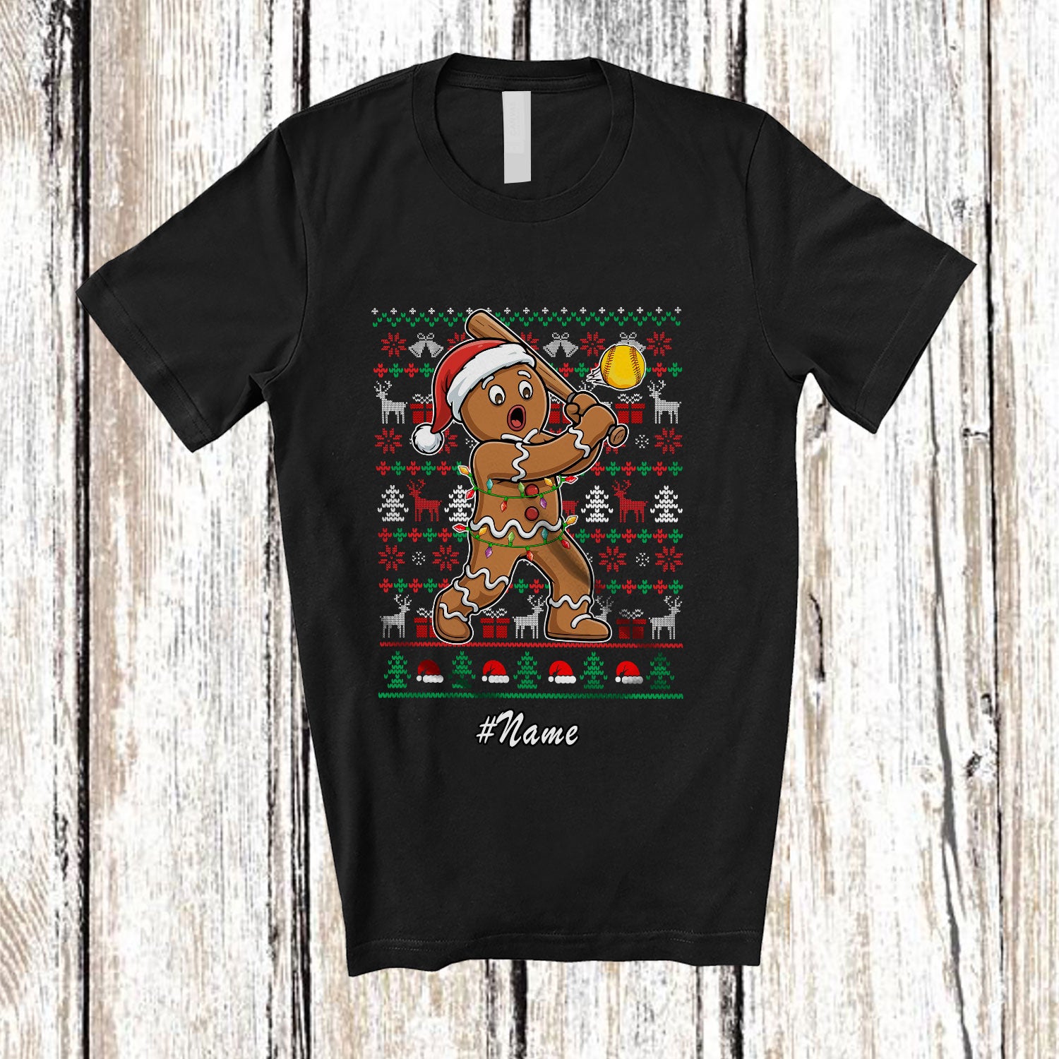 The Personalized Custom Name Gingerbread Playing Softball; Humorous Christmas Sweater Player T-Shirt is evocative, to say the least, but that's why you're drawn to it in the first place.
