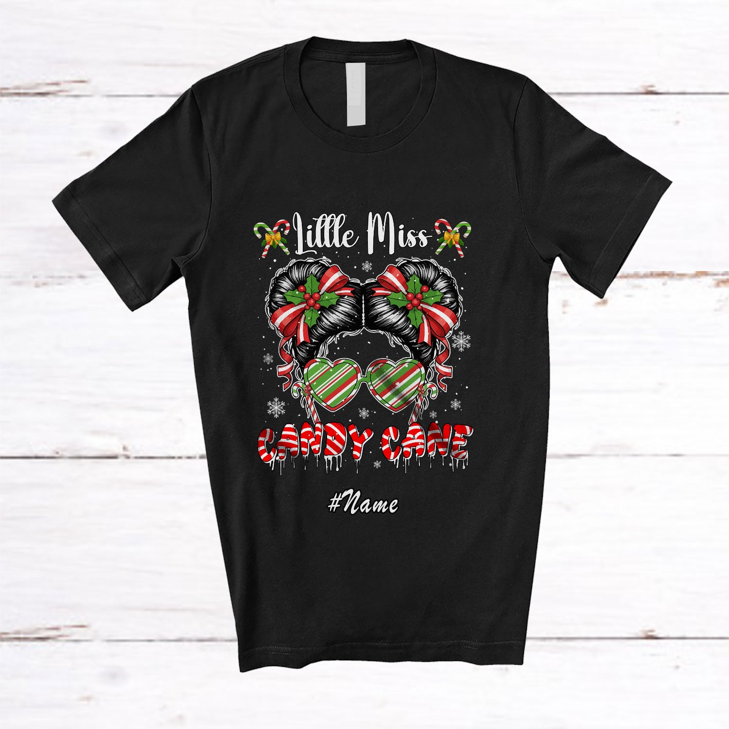Personalized Custom Name Little Miss Candy Cane; Joyful Christmas Messy Bun Girl; Family T-Shirt