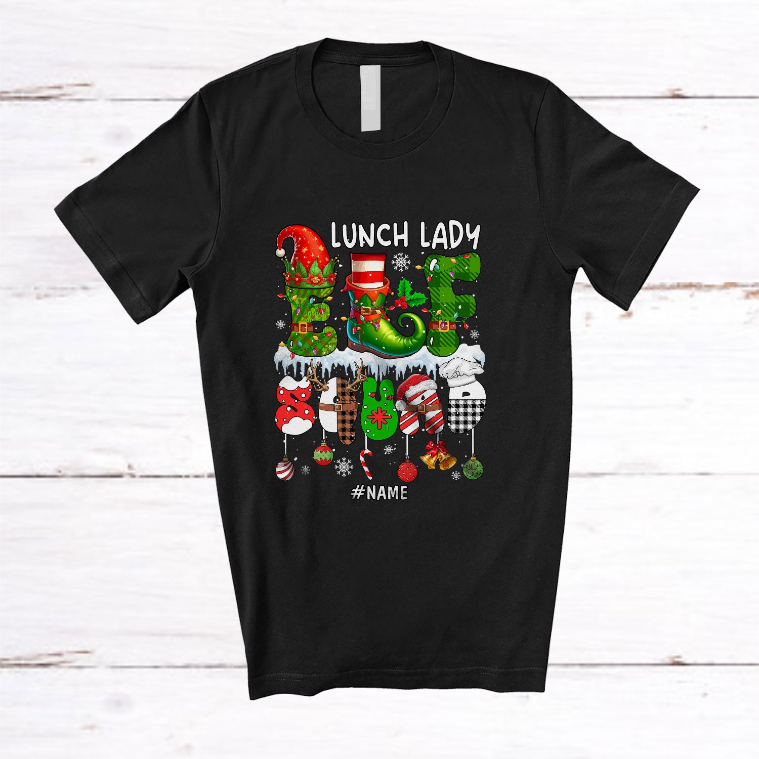 Personalized Custom Name Lunch Lady Elf Squad; Amazing Christmas Plaid Elf; Proud Jobs T-Shirt