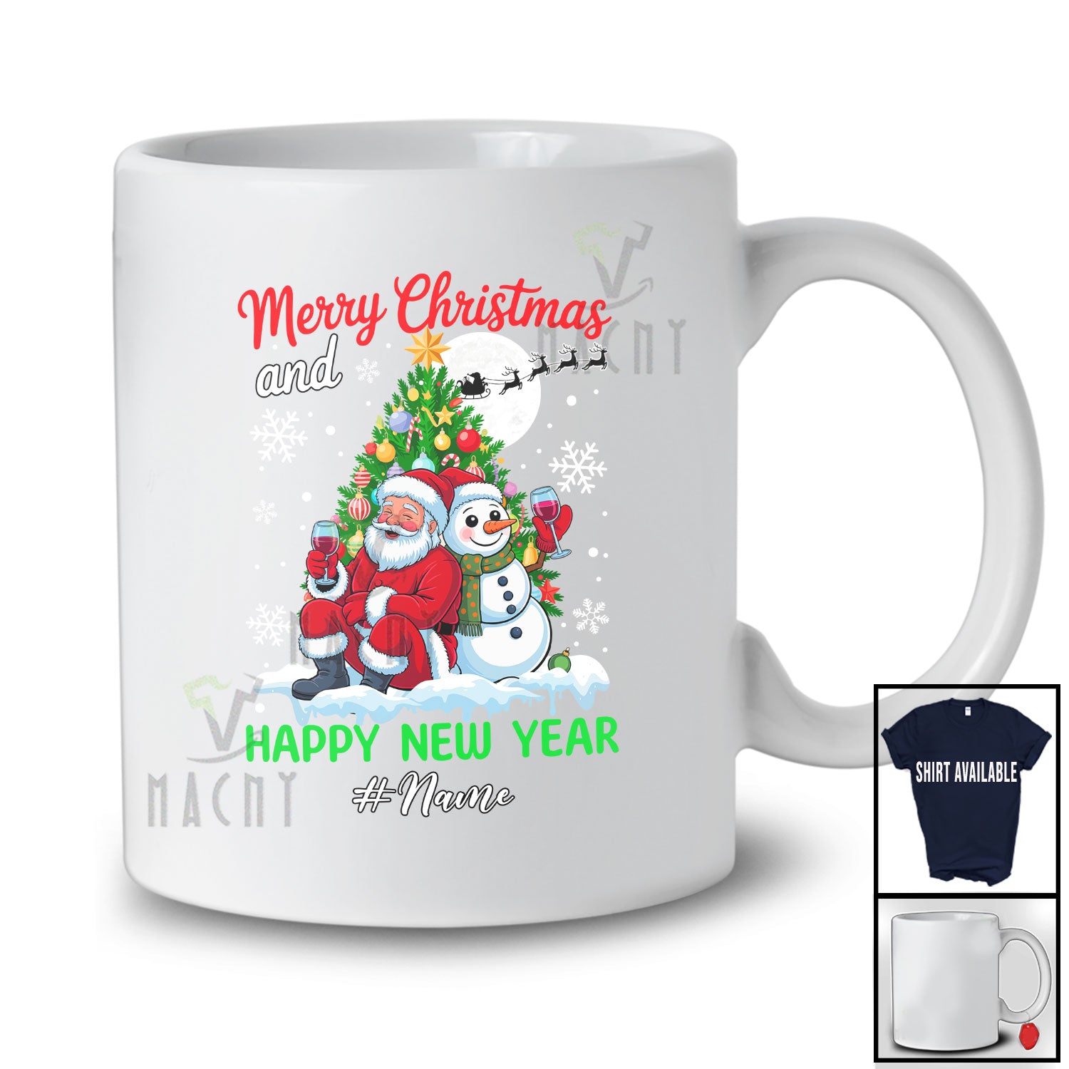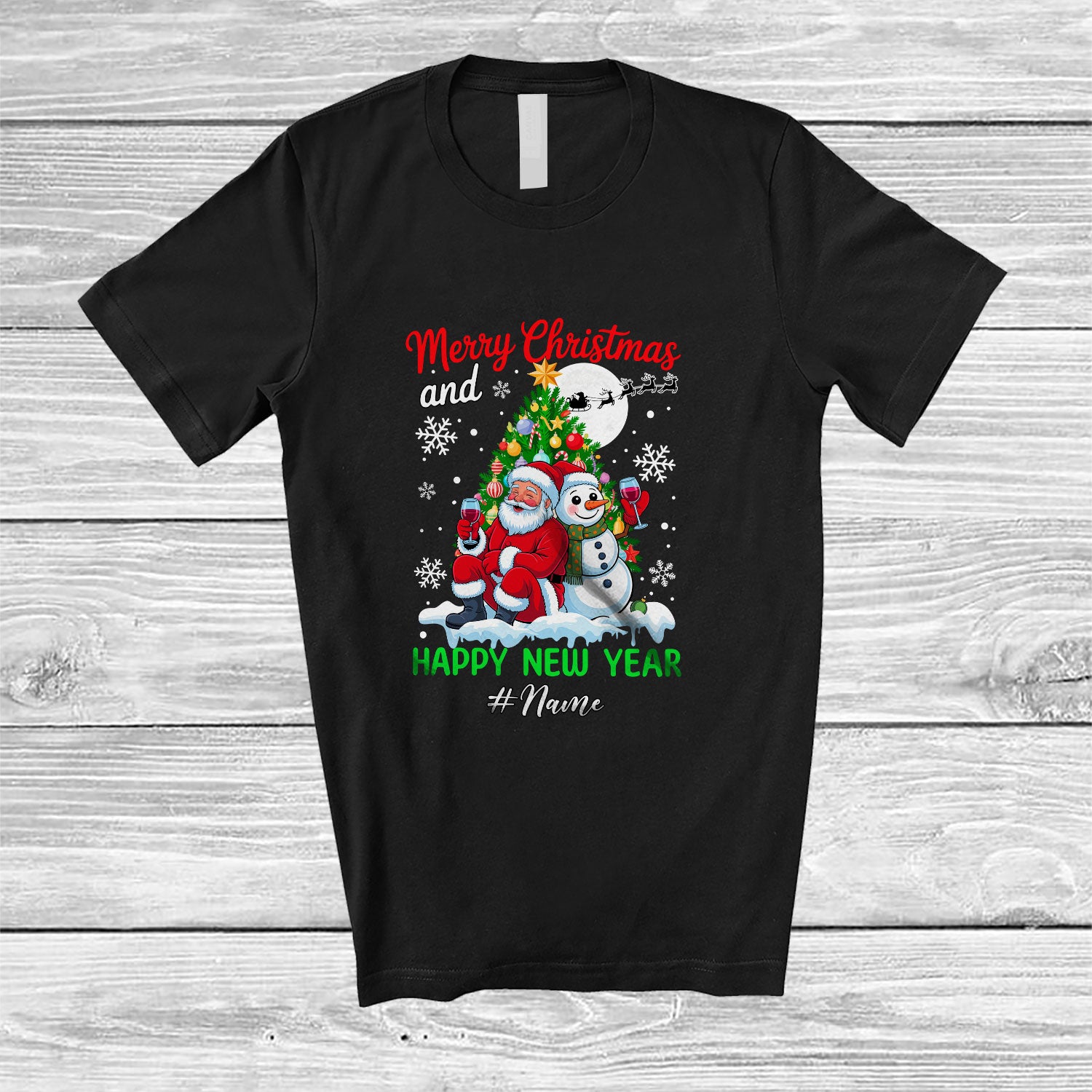Personalized Custom Name Merry Christmas Happy New Year; Lovely Snowman Santa Drinking Wine T-Shirt