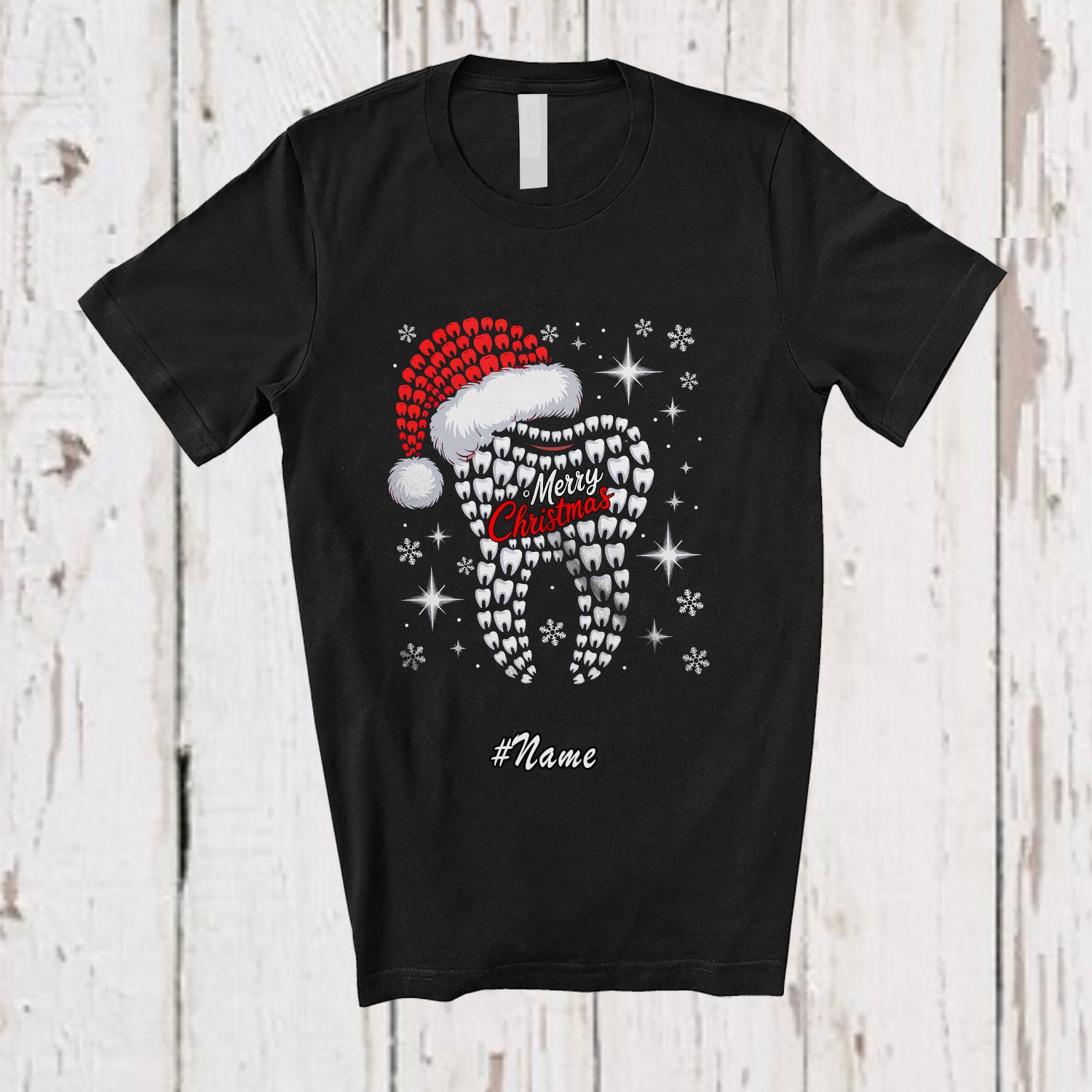 Personalized Custom Name Merry Christmas; Humorous Santa Tooth Shape; Dental Squad Dentist T-Shirt