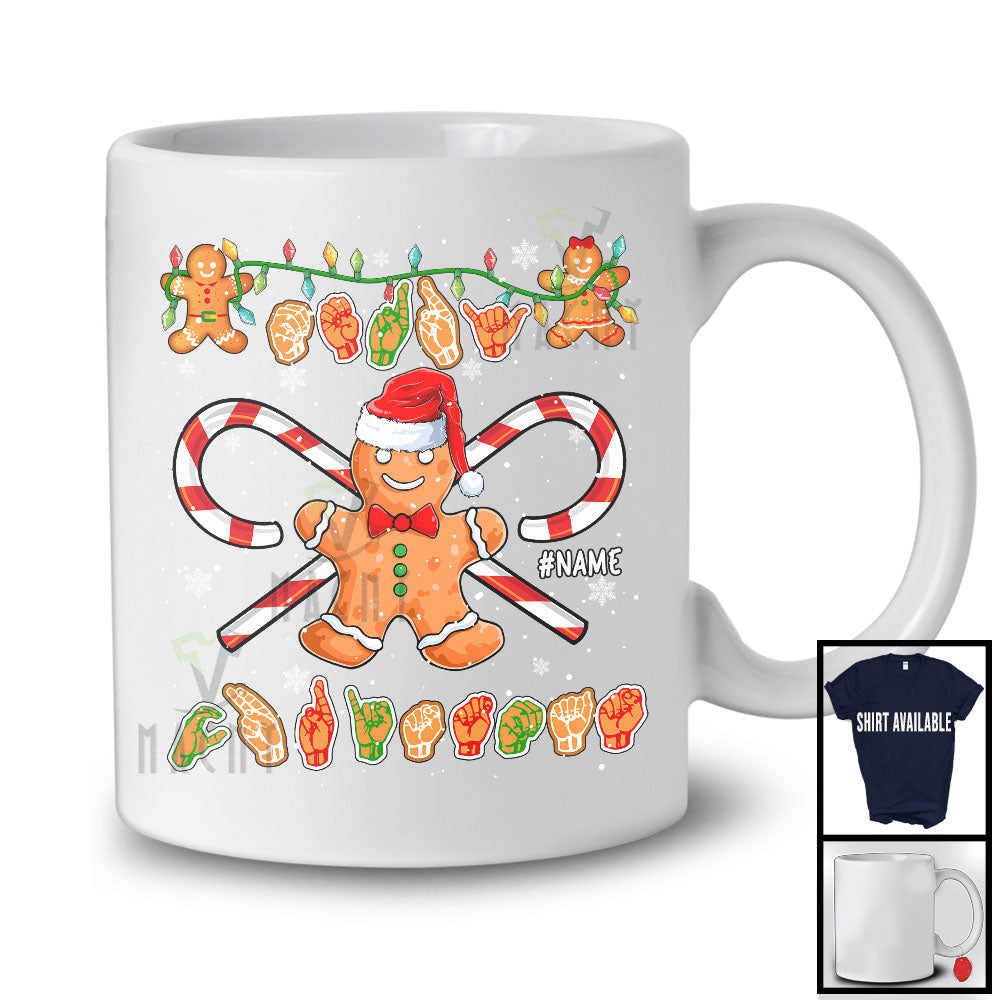 Personalized Custom Name Merry Christmas; Lovely ASL Hands Sign Language Candy Cane Gingerbread T-Shirt