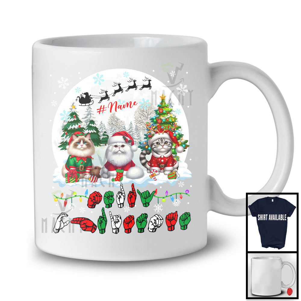 Personalized Custom Name Merry Christmas; Lovely Three ASL Cats; X-mas Moon Sign Language T-Shirt