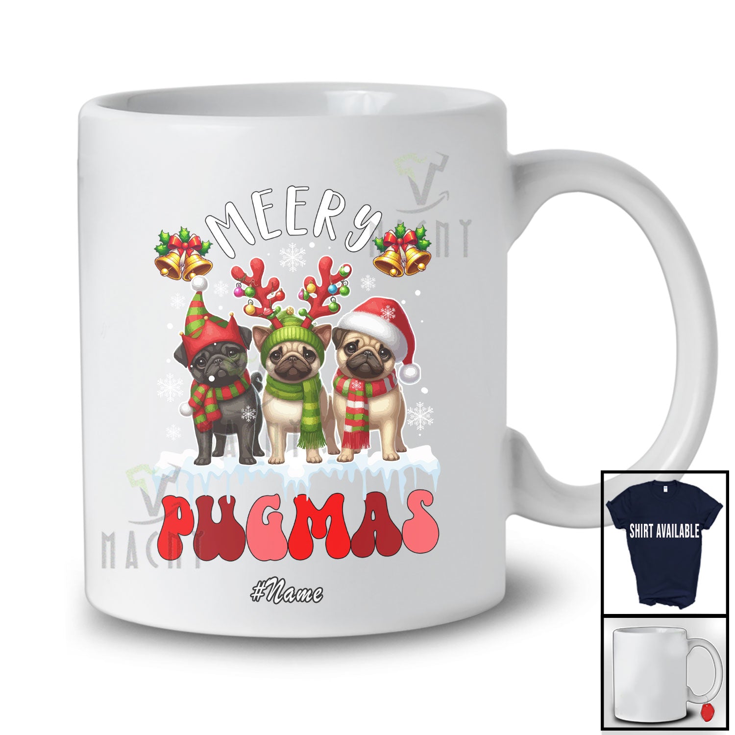 This Personalized Custom Name Merry Pugmas; Awesome Christmas Santa Black Pug Reindeer T-Shirt is great idea gift for your family, friends in this birthday, christmas, mother's day, father's day, patrick's day or any holiday.