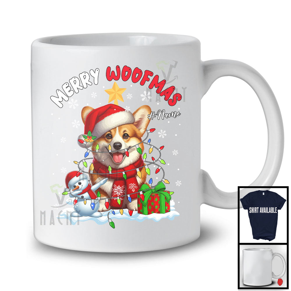 Personalized Custom Name Merry Woofmas; Lovely Christmas Lights Santa Corgi; Snowman T-Shirt