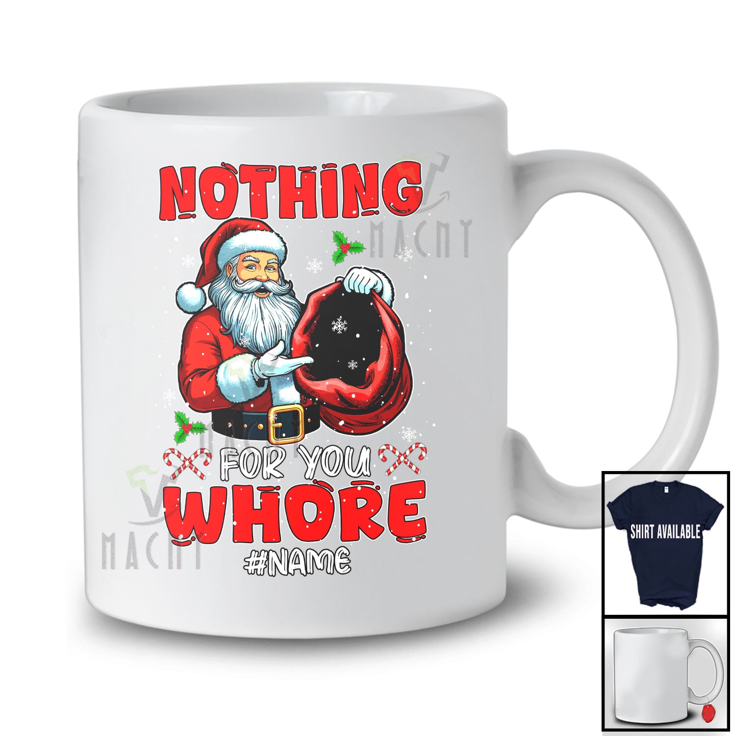 Personalized Custom Name Nothing For You Whore; Sarcastic Christmas Snowing; Santa Naughty T-Shirt. This cotton t-shirt is a durable staple product with a classic fit. One of the most popular items, it has a relaxed style made for everyday and casual wear.