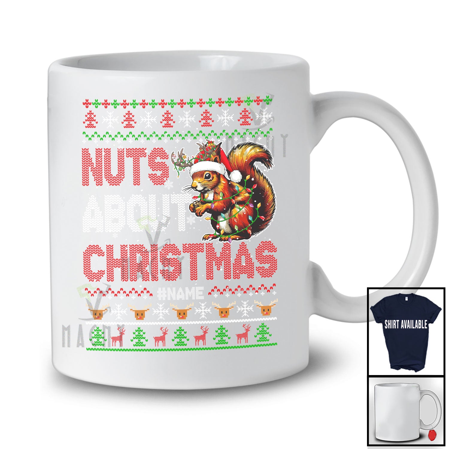 Personalized Custom Name Nuts About Christmas; Lovely X-mas Sweater Custom Name Squirrel T-Shirt. This cotton t-shirt is a durable staple product with a classic fit. One of the most popular items, it has a relaxed style made for everyday and casual wear.