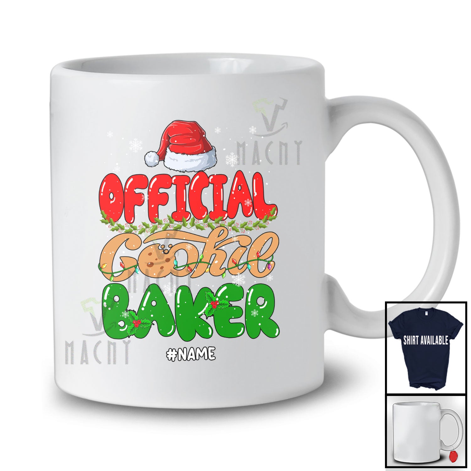 This Personalized Custom Name Official Cookie Baker; Awesome Christmas Lights Santa Baking Baker T-Shirt is great idea gift for your family, friends in this birthday, christmas, mother's day, father's day, patrick's day or any holiday.