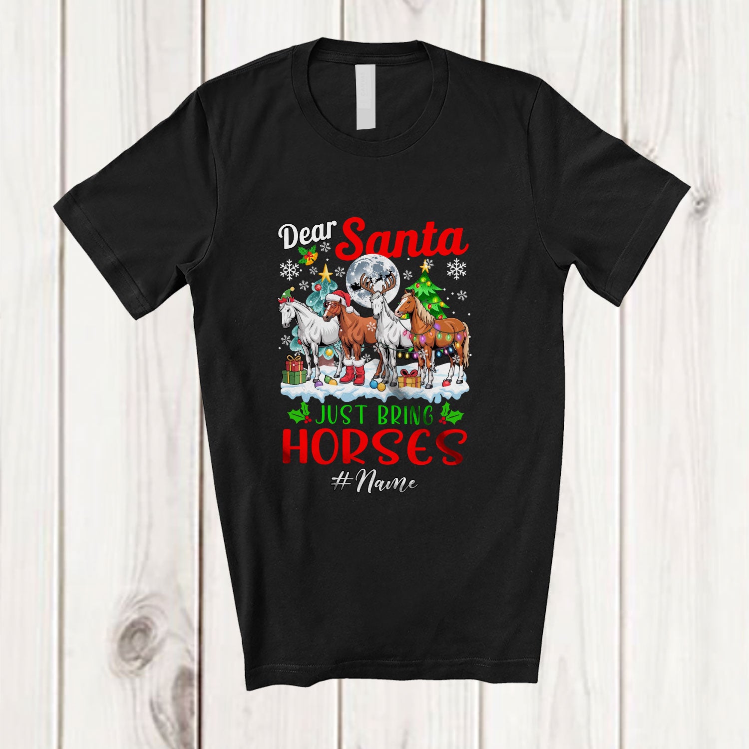 Personalized Custom Name Santa Just Bring Horses; Joyful Christmas Moon Trees Four Animals T-Shirt