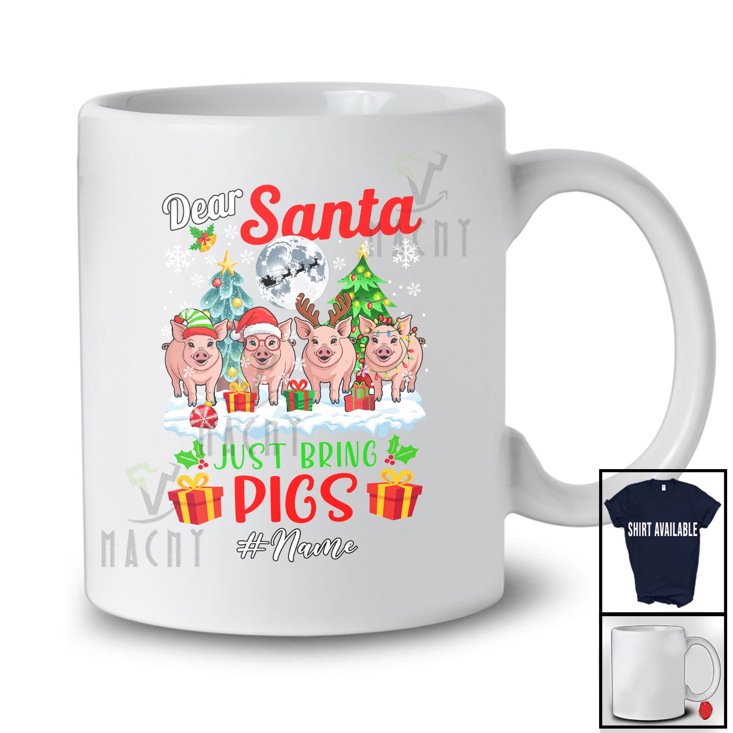 This Personalized Custom Name Santa Just Bring Pigs; Joyful Christmas Moon Trees Four Animals T-Shirt is great idea gift for your family, friends in this birthday, christmas, mother's day, father's day, patrick's day or any holiday.