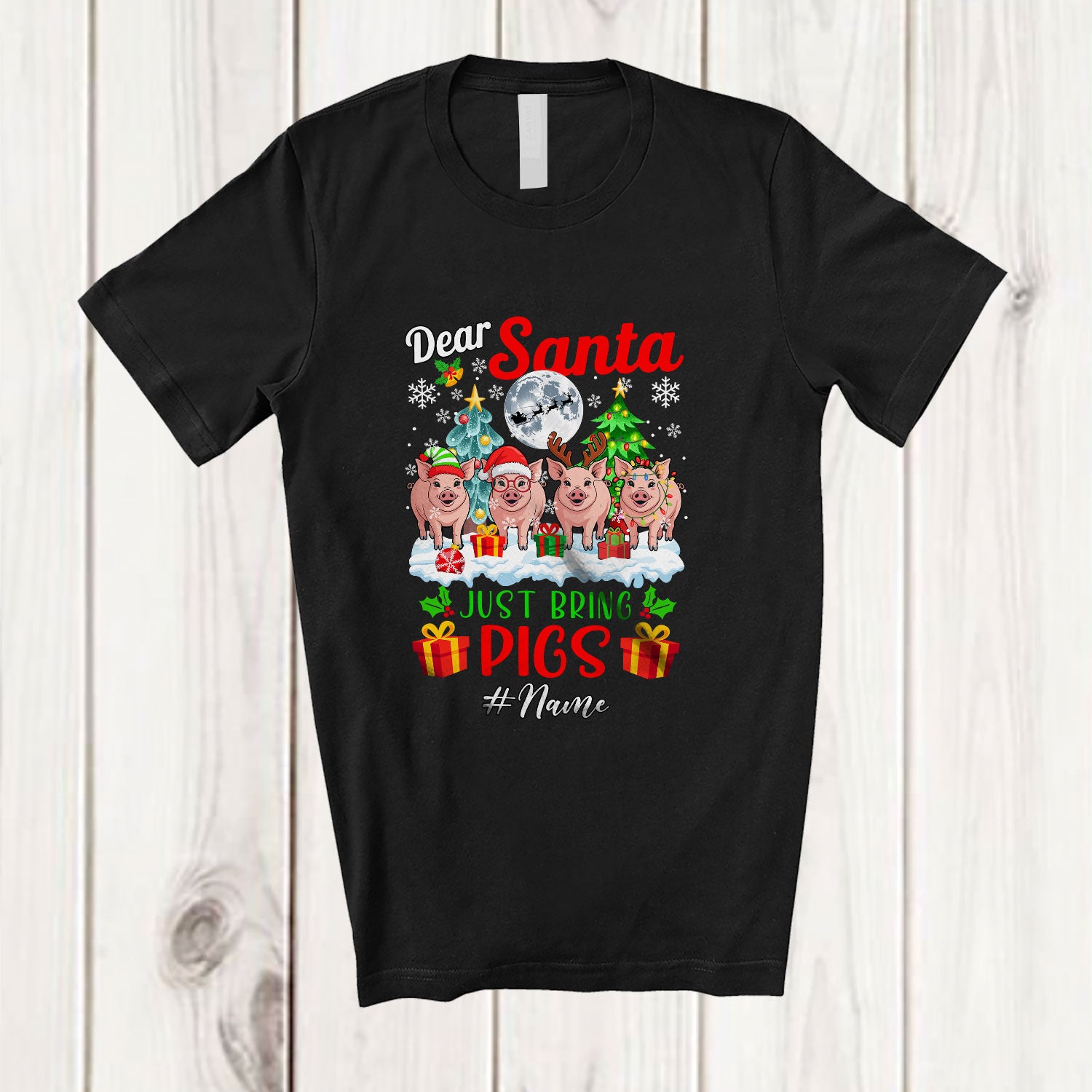 Personalized Custom Name Santa Just Bring Pigs; Joyful Christmas Moon Trees Four Animals T-Shirt