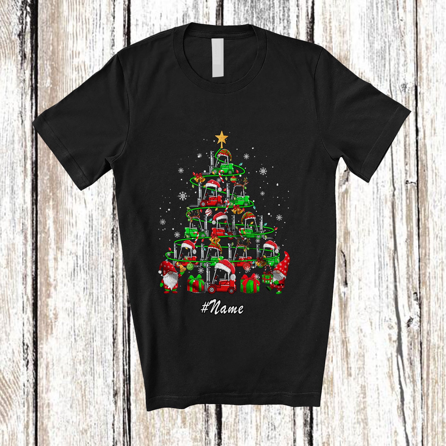 Personalized Custom Name Santa Reindeer Elf Forklifts Christmas Tree; Lovely Driver Gnomes T-Shirt