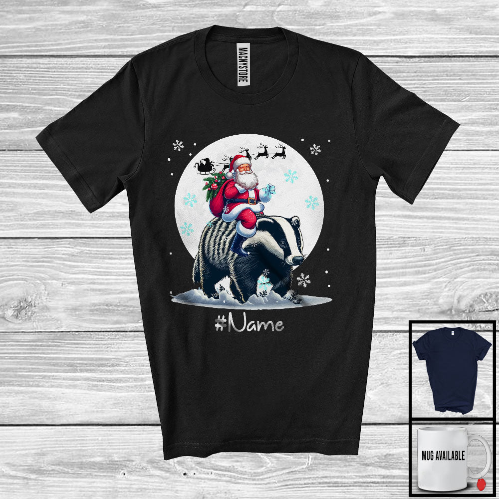 Personalized Custom Name Santa Riding Badger, Merry Christmas Moon Snow Badger, X-mas T-Shirt
