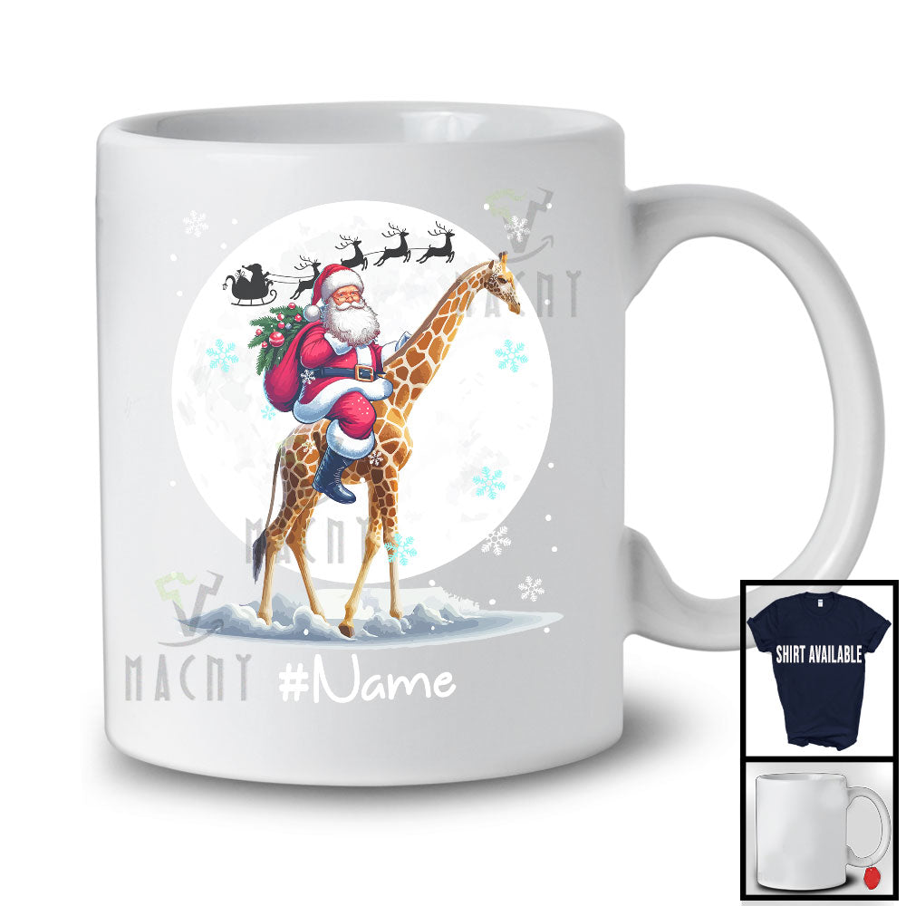 new MacnyStore - Personalized Custom Name Santa Riding Giraffe, Merry Christmas Moon Snow Giraffe, X-mas T-Shirt – Macnystore
