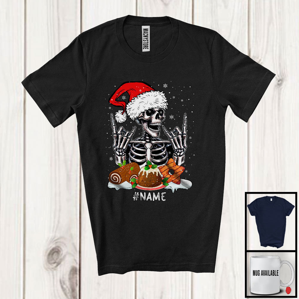 Personalized Custom Name Santa Skeleton With X-mas Dinner; Amazing Christmas Snowing; Family T-Shirt